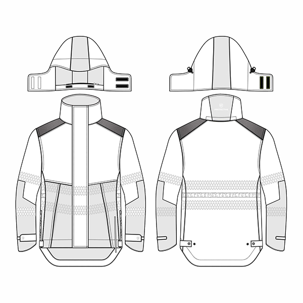 • Detachale hood with zipper and velcro closure